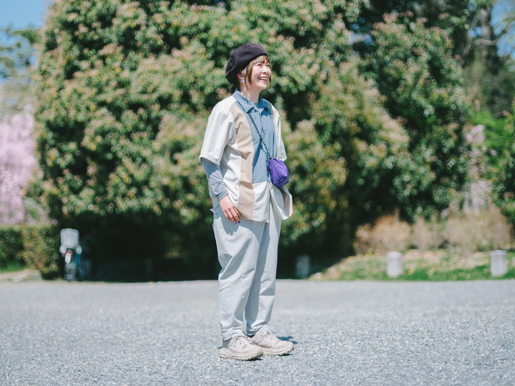 フロントポケットは、大きさ、深さにこだわって手を入れやすくデザインしています。着用したらぜひポケットに手を入れてみてください。また、しゃがんだ時にポケットに入れたものが不意に出にくい形状にしています。