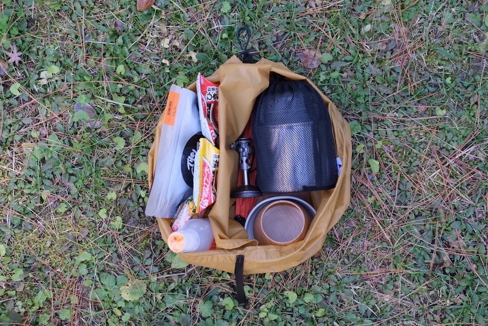 また2つの荷室があるにも関わらず、取り出し口が一つなのも、中身の見やすさに一役買っています。クッカーと食料など、同時に使うものを入れておけば、スマートに取り出せるので、テン場で色々な荷物を広げる必要がありません。